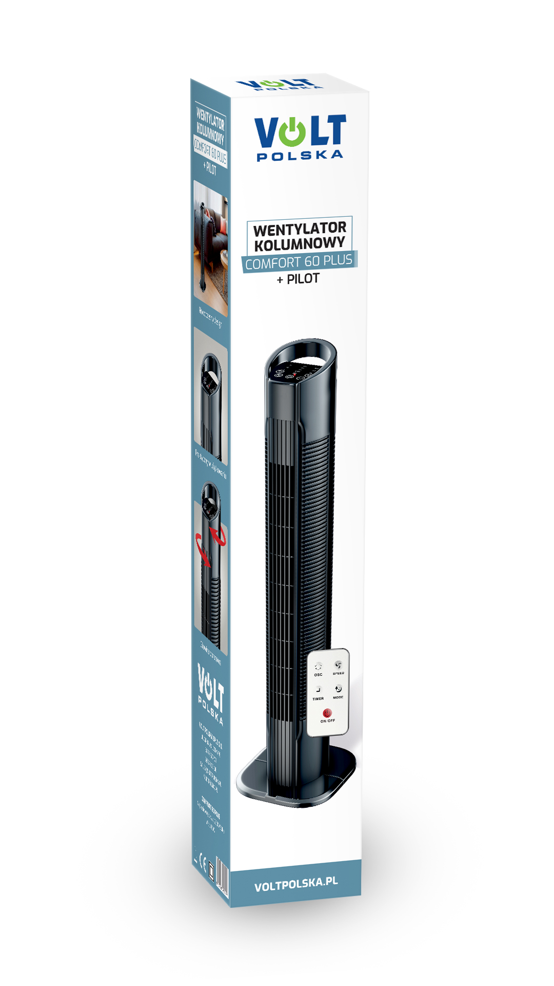 Wentylator kolumnowy z serii COMFORT PLUS 60 to nowoczesne, przenośne urządzenie, zapewniające cyrkulację powietrza w pomieszczeniach. Świetnie sprawdzi się w m.in. biurze, salonie, sypialni, restauracji, wszędzie tam gdzie przeszkadza nam wysoka temperatura.