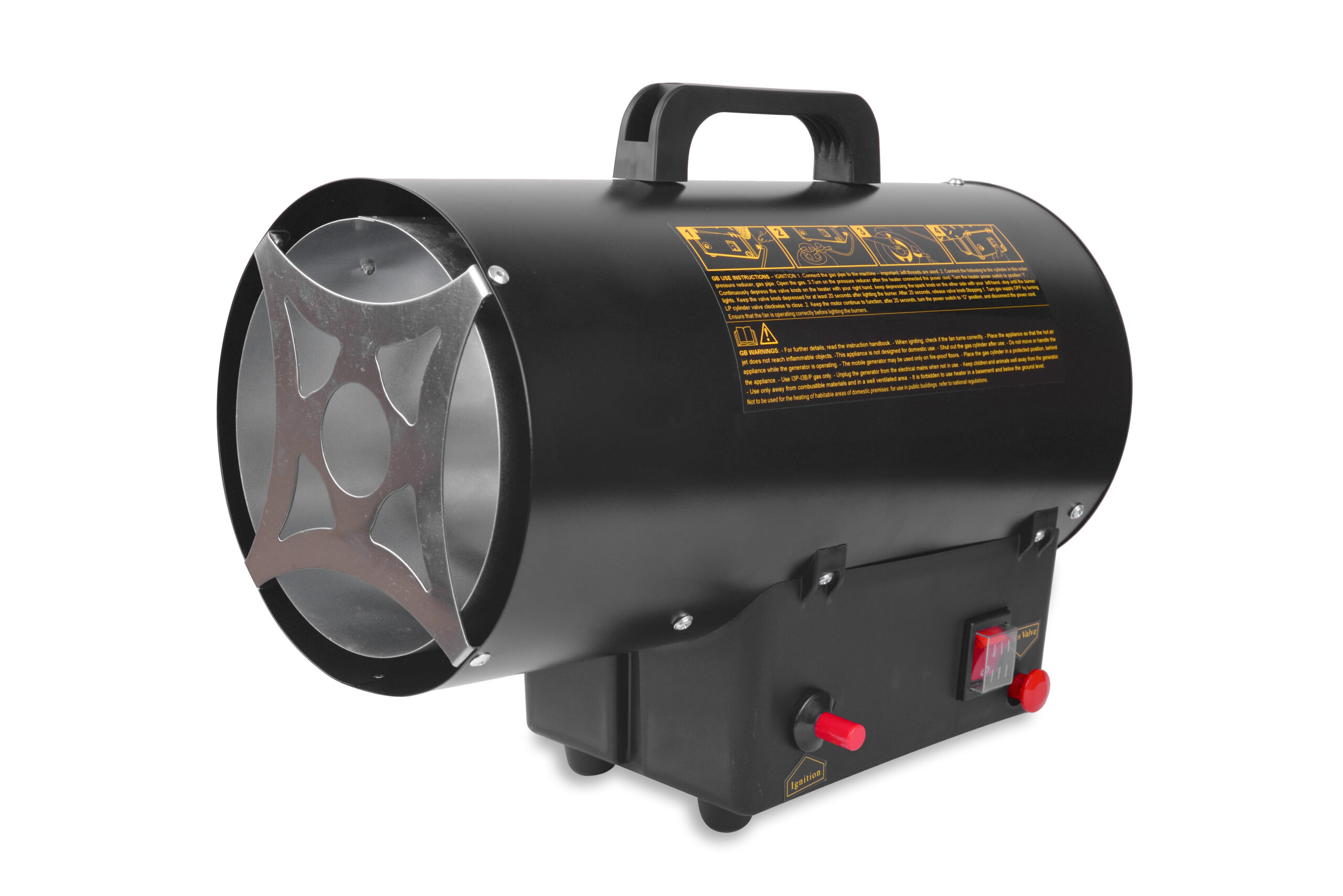 Nagrzewnica zasilana jest gazem propan-butan, dzięki czemu wytwarza czyste i ciepłe powietrze. Proces spalania odbywa się w otwartej komorze spalania, powietrze zasysane przez wentylator jest ocieplane, a następnie wydmuchiwane z nagrzewnicy. Nie wymaga komina, należy jedynie zapewnić dopływ powietrza, aby umożliwić prawidłowe spalanie.